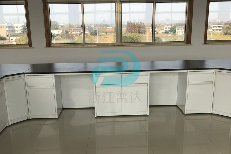 1、臺面:采用12.7mm厚實驗室專用理化板,周邊加厚至25.4mm,倒圓角處理. ,防強酸強堿,耐磨耐高溫。不含任何有毒物質,無輻射。